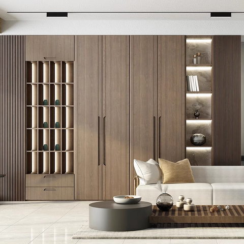 خزانة تلفزيون كاملة الجدار من الخشب الصلب خزانة كتب مخصصة لغرفة المعيشة للفنادق