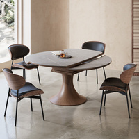 Solid Wood Rock Board Modern Foldable Retractable Dining Table with Stainless Steel 1 Meter Square for Home Furniture