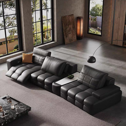 Electric Genuine Leather Three Seat Sofa Zero Wall Lawrence Black Multi-functional Italian Villa Living Room Straight High-end