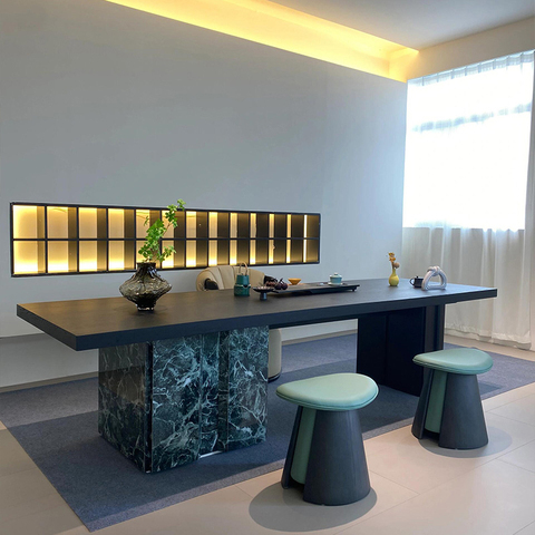 Modern Cloisonne Luxury Stone Tea Table Extendable Wooden Desk for Office or Villa Living Room Integrated Furniture