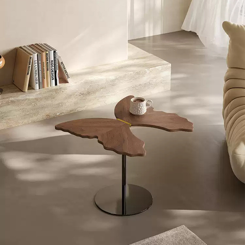 Italienischer moderner minimalisti scher Schmetterlings-Beistell tisch Kreativer Log Walnut Color Sofa Eck tisch mit spezieller Form
