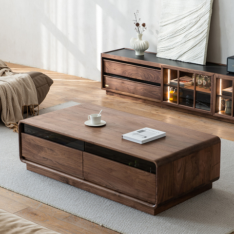 Table basse en bois massif moderne en noyer noir d'Amérique du Nord, meubles de salon