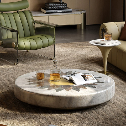 Moderner Luxus-Marmor-Couch tisch Hochwertige Grand Mansion Villa Wohnzimmer möbel Charmante goldene Sonnenblume Master-Level