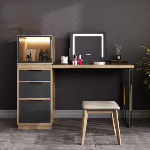 Maxky ड्रेसर आयोजक सभी-में-एक लक्जरी फर्नीचर बेडरूम Multifunctional कोने शेल्फ सरल Wabi-Sabi शैली मेकअप टेबल