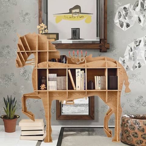 Sáng Tạo Ngựa Gỗ Rắn Kệ Sách Thiết Kế Hiện Đại Phòng Khách Phân Vùng Tủ Hiển Thị Tủ Sách Cho Phòng Ngủ Lối Vào Tủ