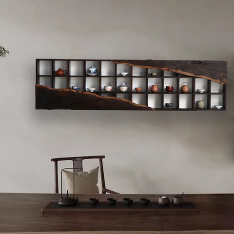 Phong cách Trung Quốc đa kho báu Tủ treo tường lưu trữ cổ Kệ Lưới Wabi-sabi phong cách cổ kệ gỗ rắn teacup giá