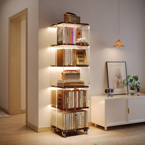 Acrylic xoay kệ sách 360 độ phòng khách bên cạnh TV kệ lưu trữ có thể tháo rời nhiều lớp rắn gỗ Tủ Sách