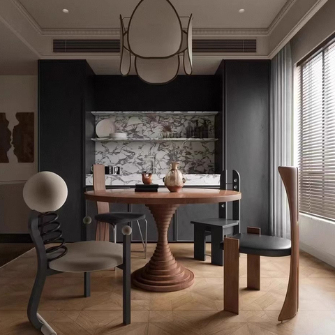 Bàn ăn tròn bằng gỗ rắn cổ điển thiết kế hiện đại cho căn hộ nhỏ hoặc khách sạn sáng tạo phong cách nghệ thuật đơn giản