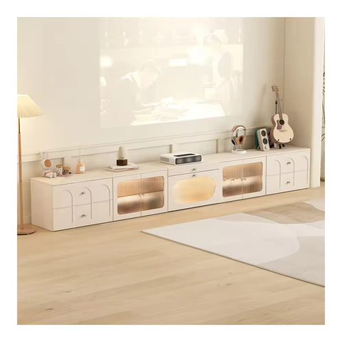 프렌치 크림 스타일 거실 TV 캐비닛 바닥 서있는 다리 없는 간단한 현대 바닥 TV 벽 캐비닛