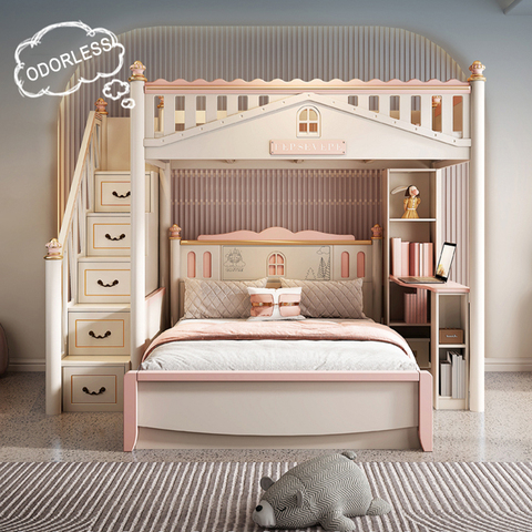 Projeto da coroa rosa crianças cama para meninas multi-funcional beliche com slide