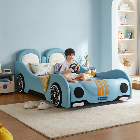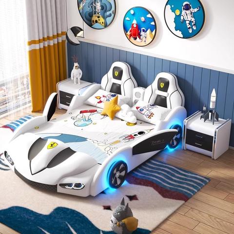 Cama de Casal dos Meninos Criativos com Carro Esportivo Guardrail Beliche de Madeira Infantil para Quarto ou Sala de Estar